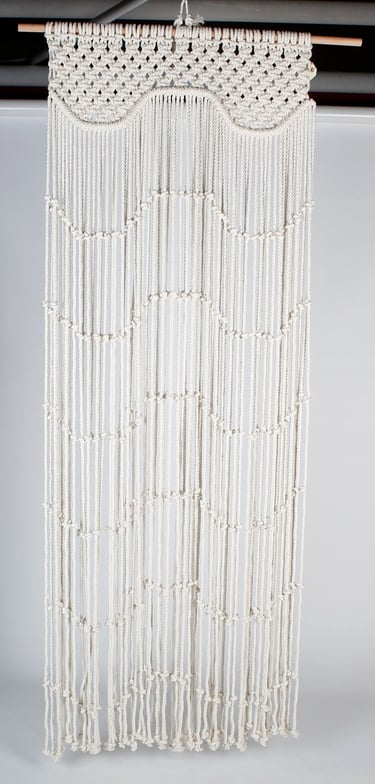 Cortina cuya belleza proviene de su sencillez. Elegida como fondo del flyer de promoción, tiene el aplauso de los que la miran. Dim. 80 x 220 cm.