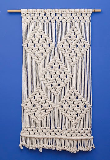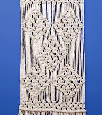 Tapiz realizado con hilo de algodón encerado de color vainilla. Dim. 70 × 113 cm.